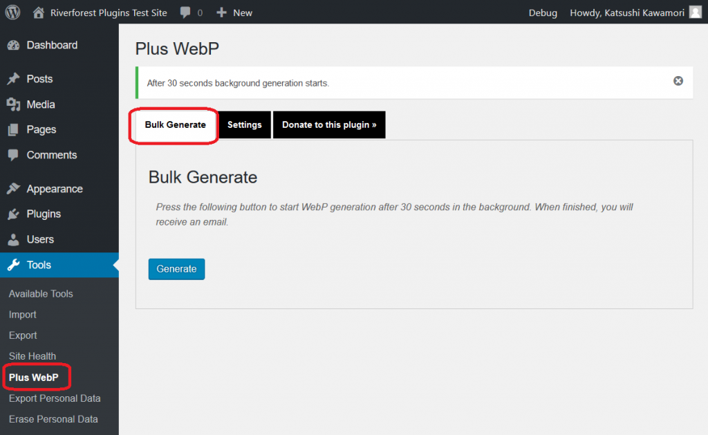 - メディアライブラリに画像ファイルを追加するときに WebP 画像を生成します。
