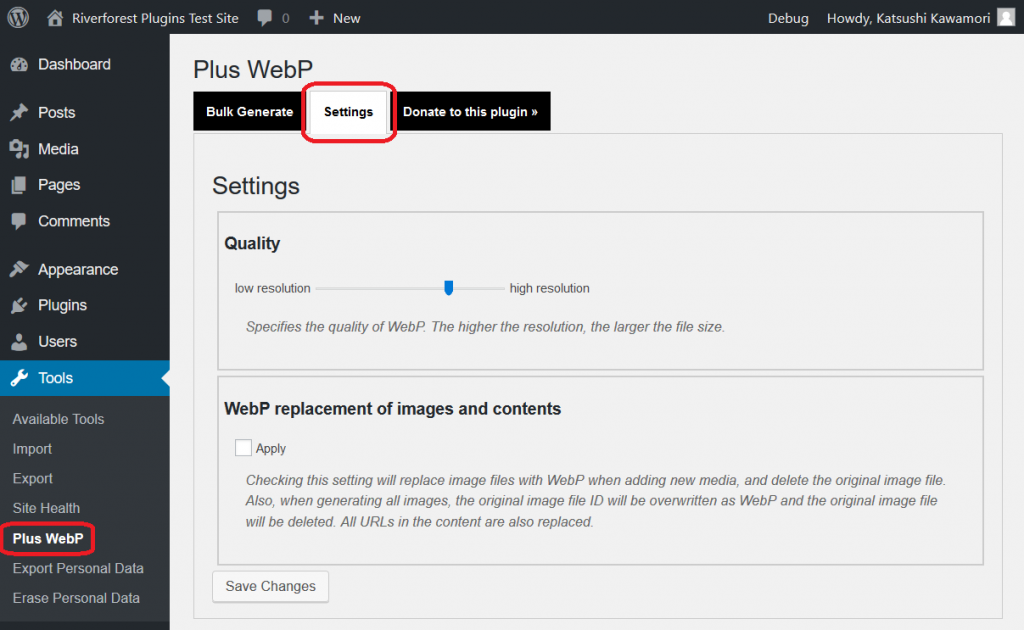 - オプションで、新規にメディアを追加する際の画像ファイルをWebPに置き換え、元の画像ファイルを削除できます。また、すべての画像を生成する場合、元の画像ファイル ID は WebP として上書きされ、元の画像ファイルを削除します。コンテンツ内のすべてのURLも置換できます。このオプションは、ほぼ全てのブラウザが WebP に対応して以降に使用すべきです。
