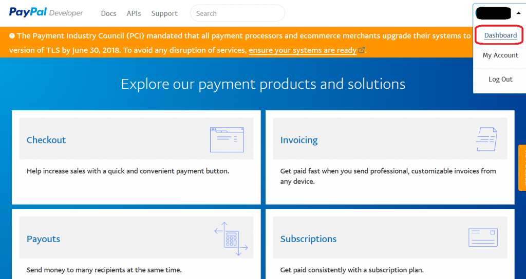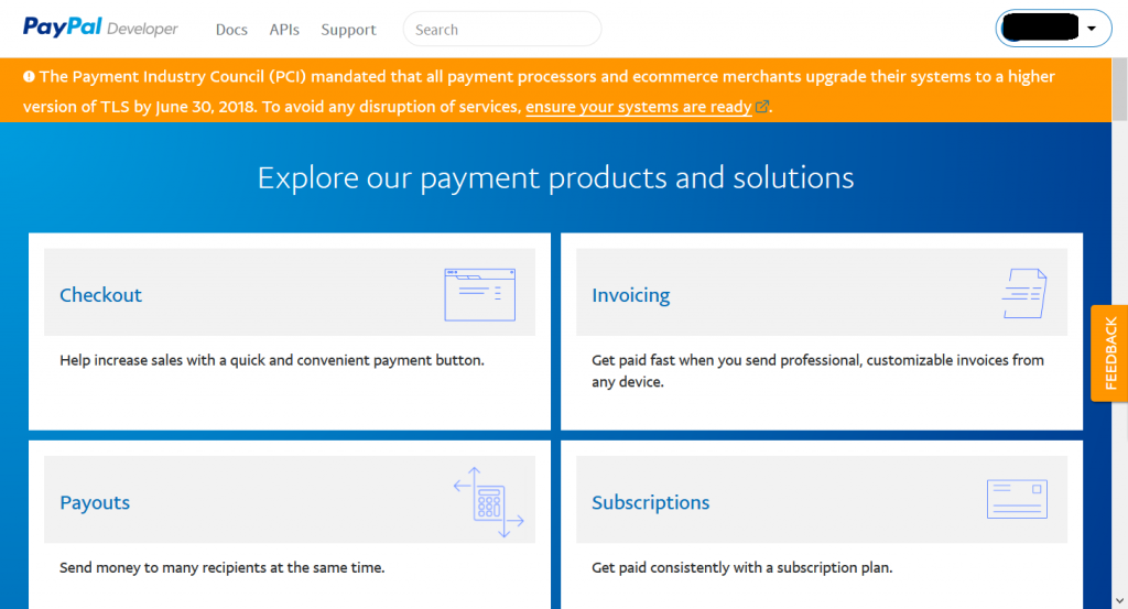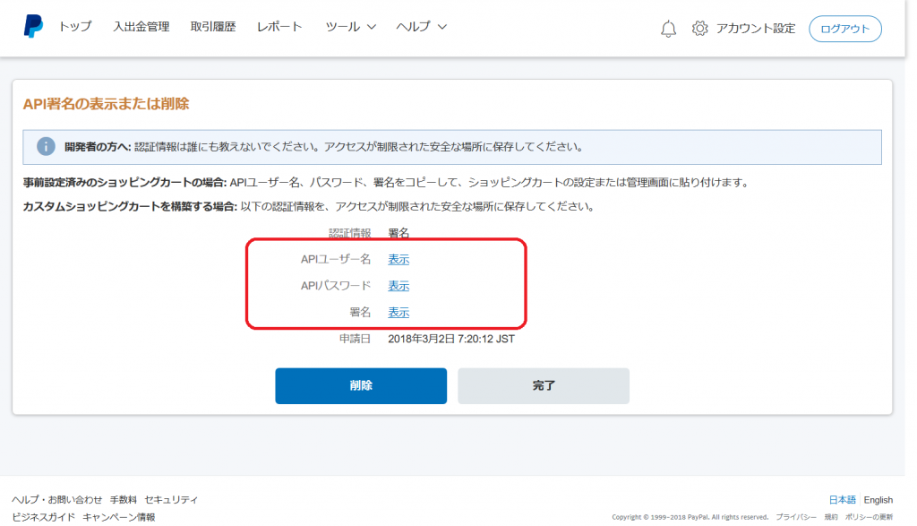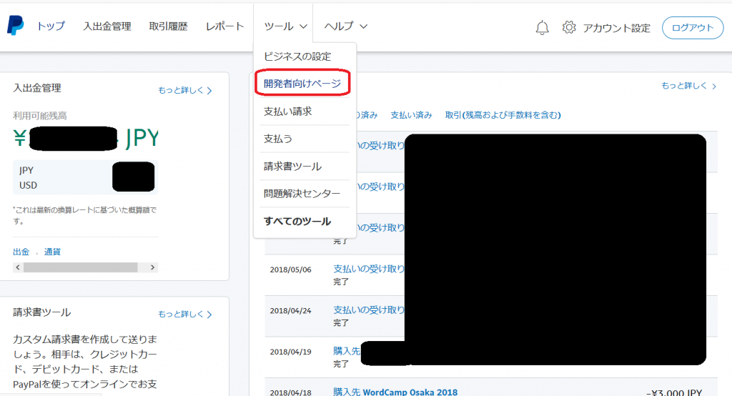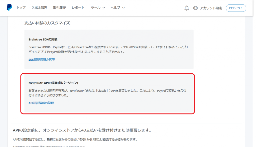 PayPal 本番環境の API キーの取得