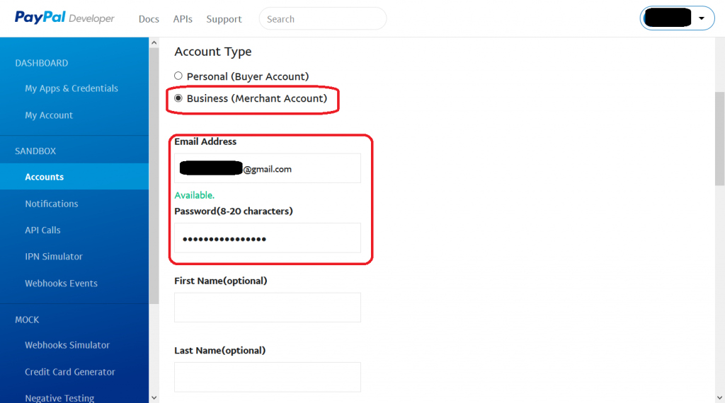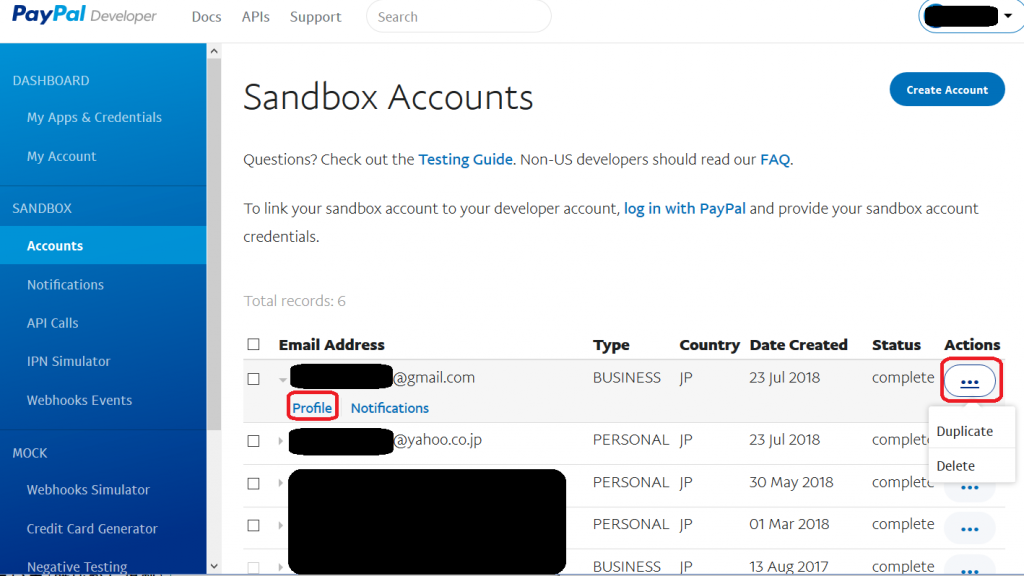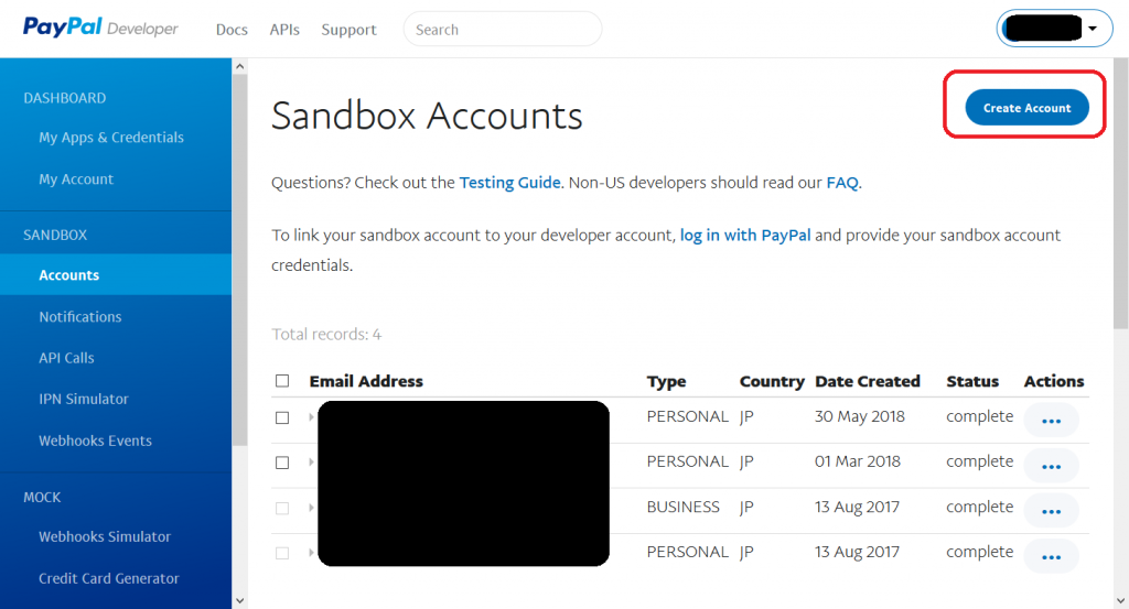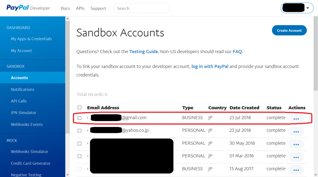 PayPal Sandbox 売り手アカウント の作成