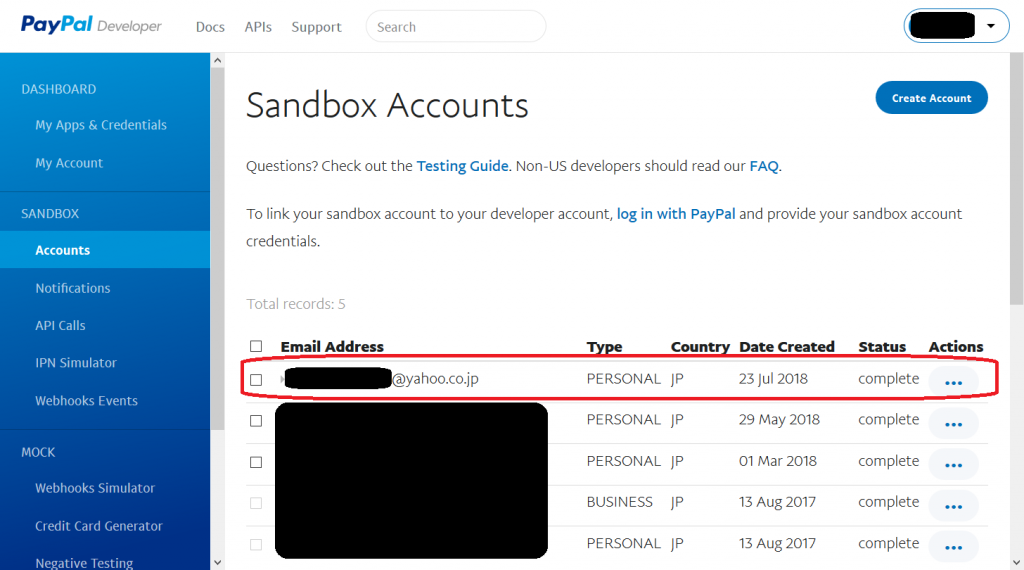 PayPal Sandbox「買い手アカウント」でテスト