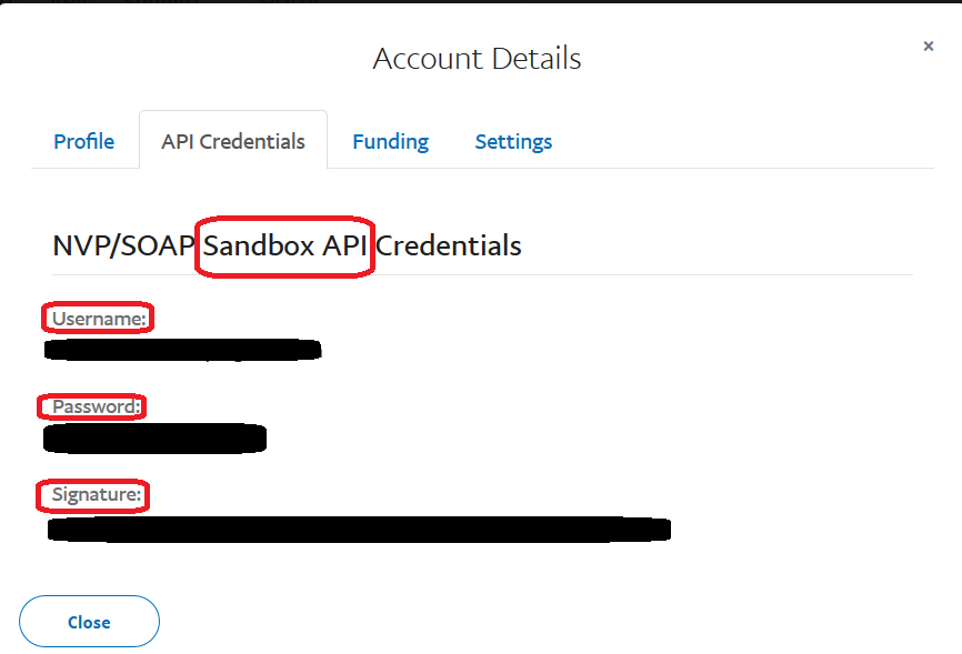 - API Credentials タブには、Sandbox 用の API キーがあります。メモしておきましょう。