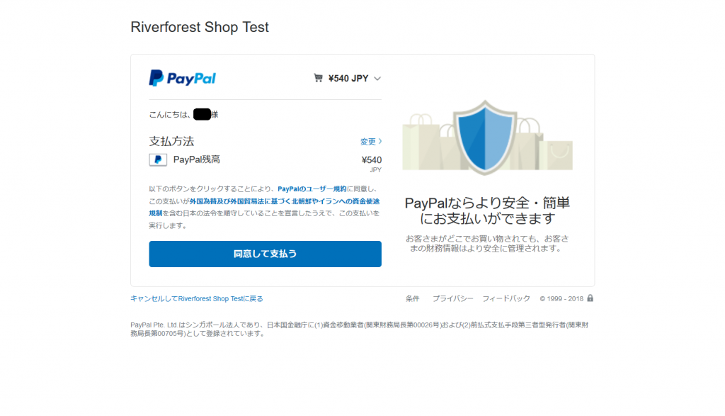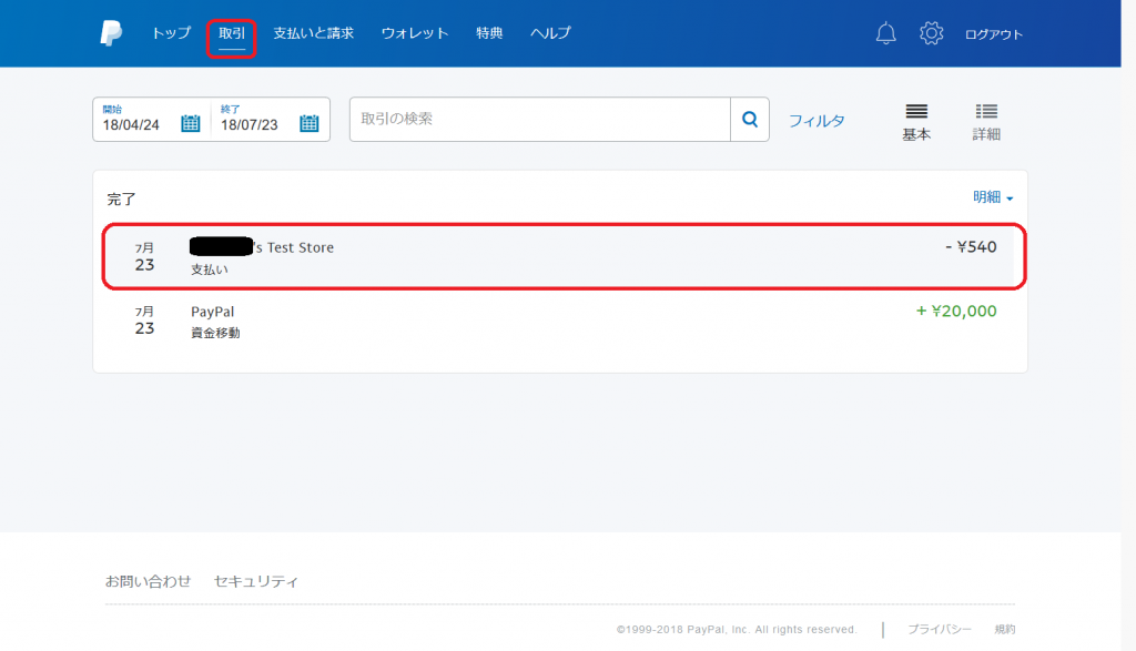 - 支払いが実行されます。これは、Sandbox「買い手アカウント」の仮のお金 20,000 円から支払われます。