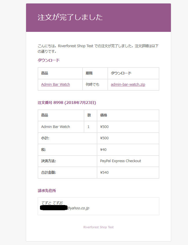 - Sandbox「買い手アカウント」のメールアドレスに、以下のメールが送られてきます。
